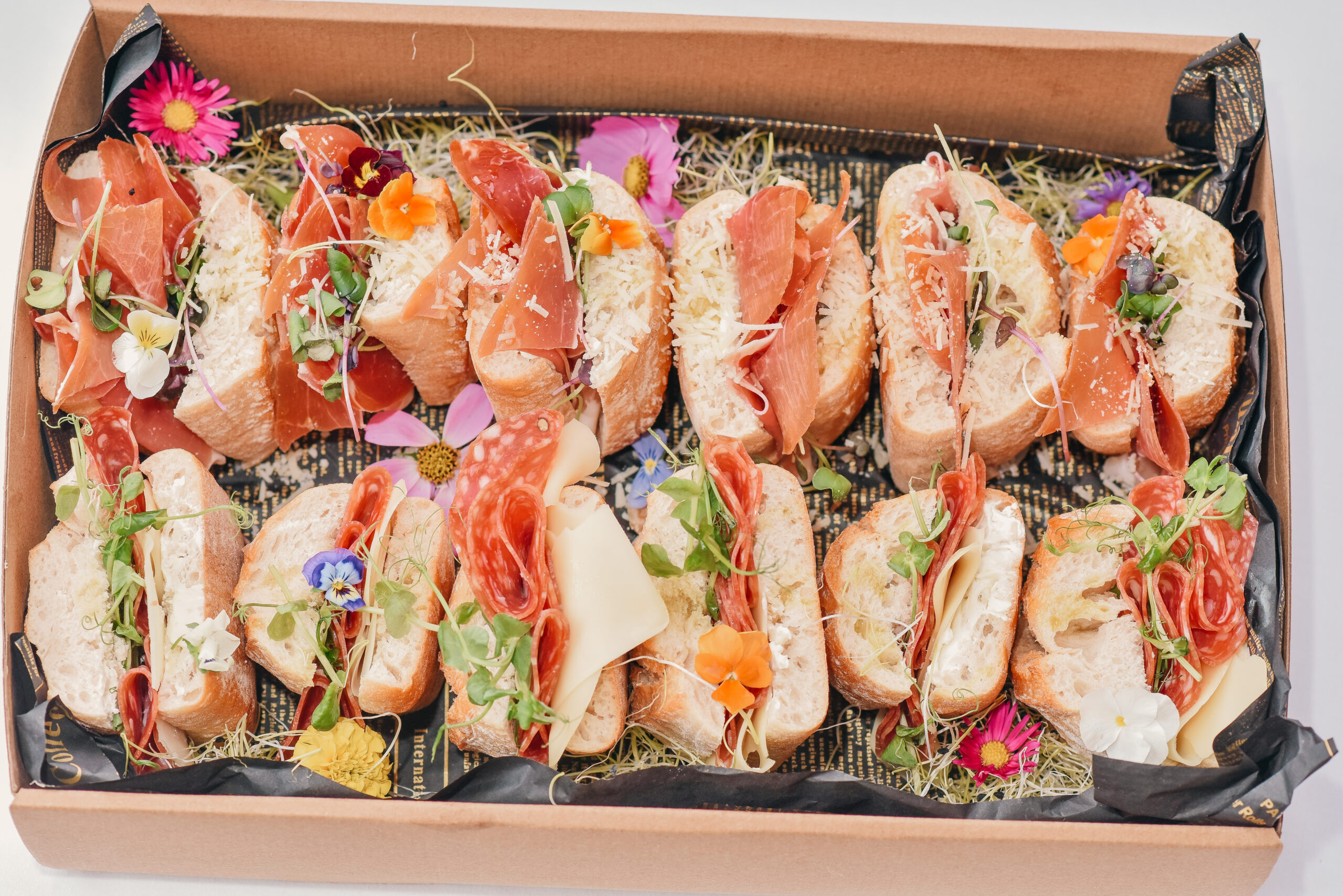 – Philadelphia, salám Napoli, hermelín, sušené rajče, olivy, klíčky